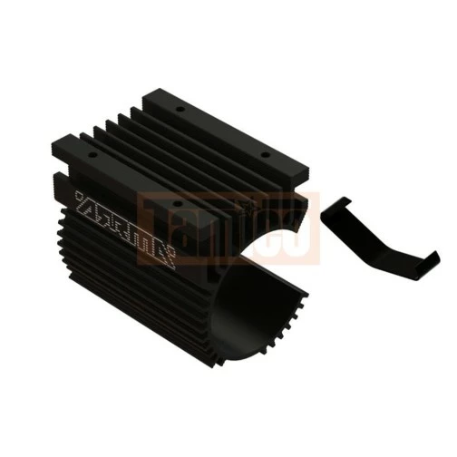 Precision manufactured for a perfect fit – Black anodized finish with etched ARRMA logo for cool looks – Constructed from high-quality light-weight aluminum – Multi-fin design increases surface area for efficient heat transfer – Flat area allows mounting of 50mm fans – Included heatsink clip – Suited to 46mm diameter motors